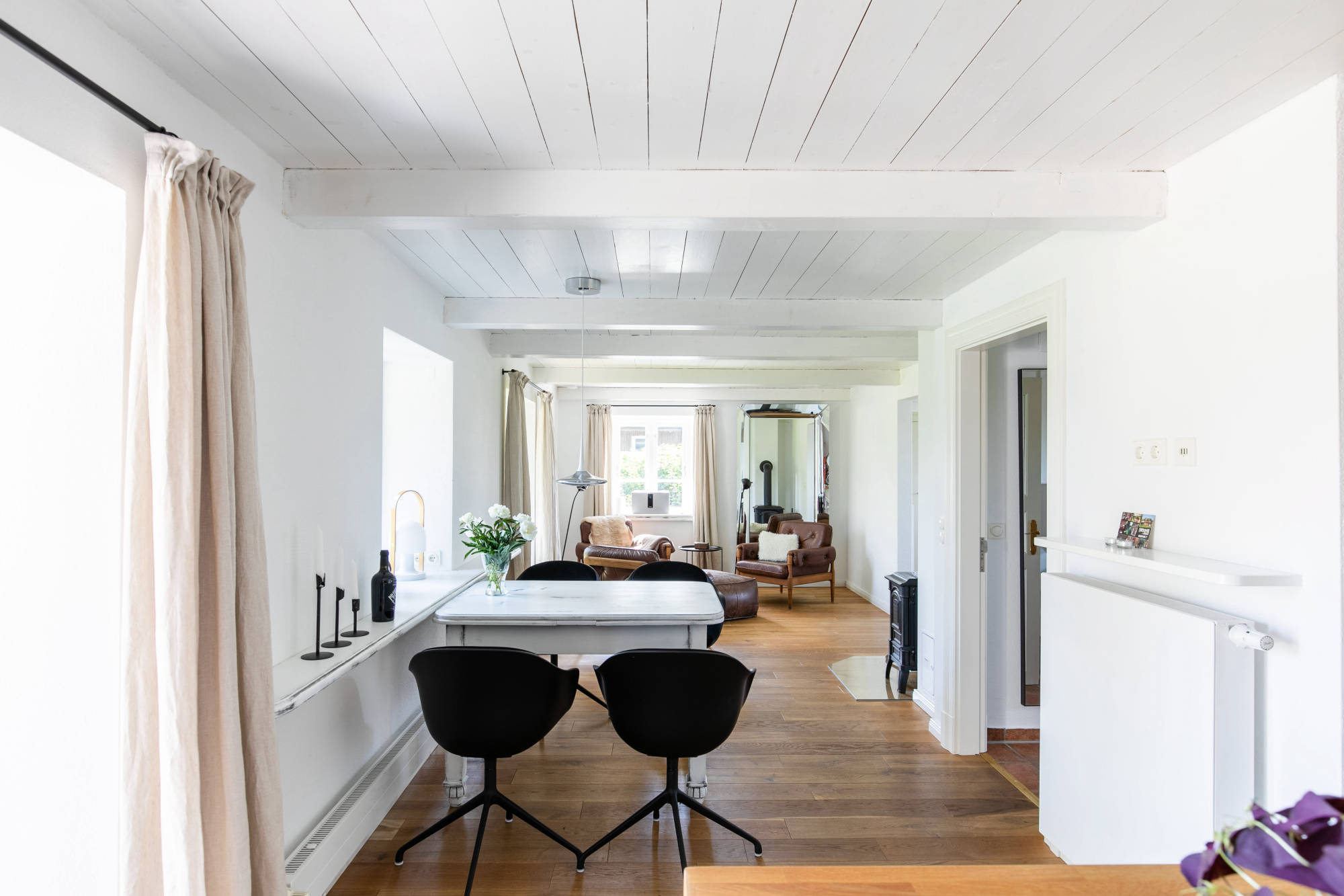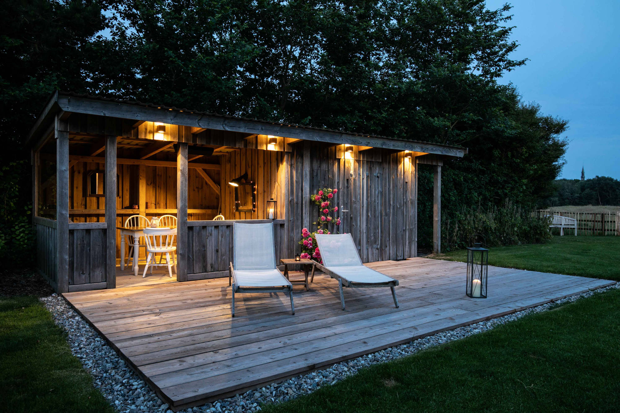 Im nach hinten gelegenen und eingefassten Garten können unsere Gäste Outdoor-Living überdacht oder auf Terrassen genießen, eine Fass-Sauna sorgt für zusätzliche Entschleunigung. Drinnen im offenen Essbereich kann danach auf dem SMEG Portofino Standherd die ganz private Koch-Show gestartet werden.