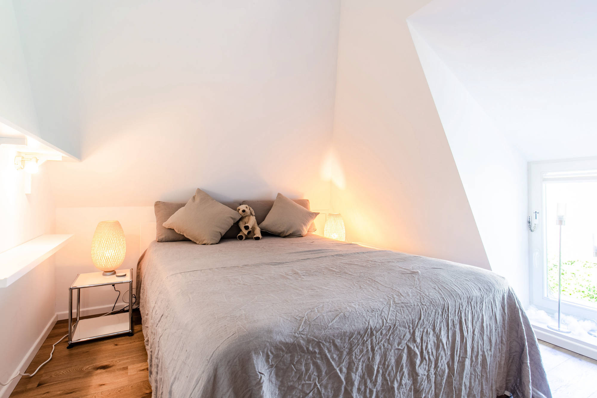 2 (Doppel-)Betten mit hochwertigen Lattenrosten – also Platz für 4, mit XL Bettdecken 155x220cm.