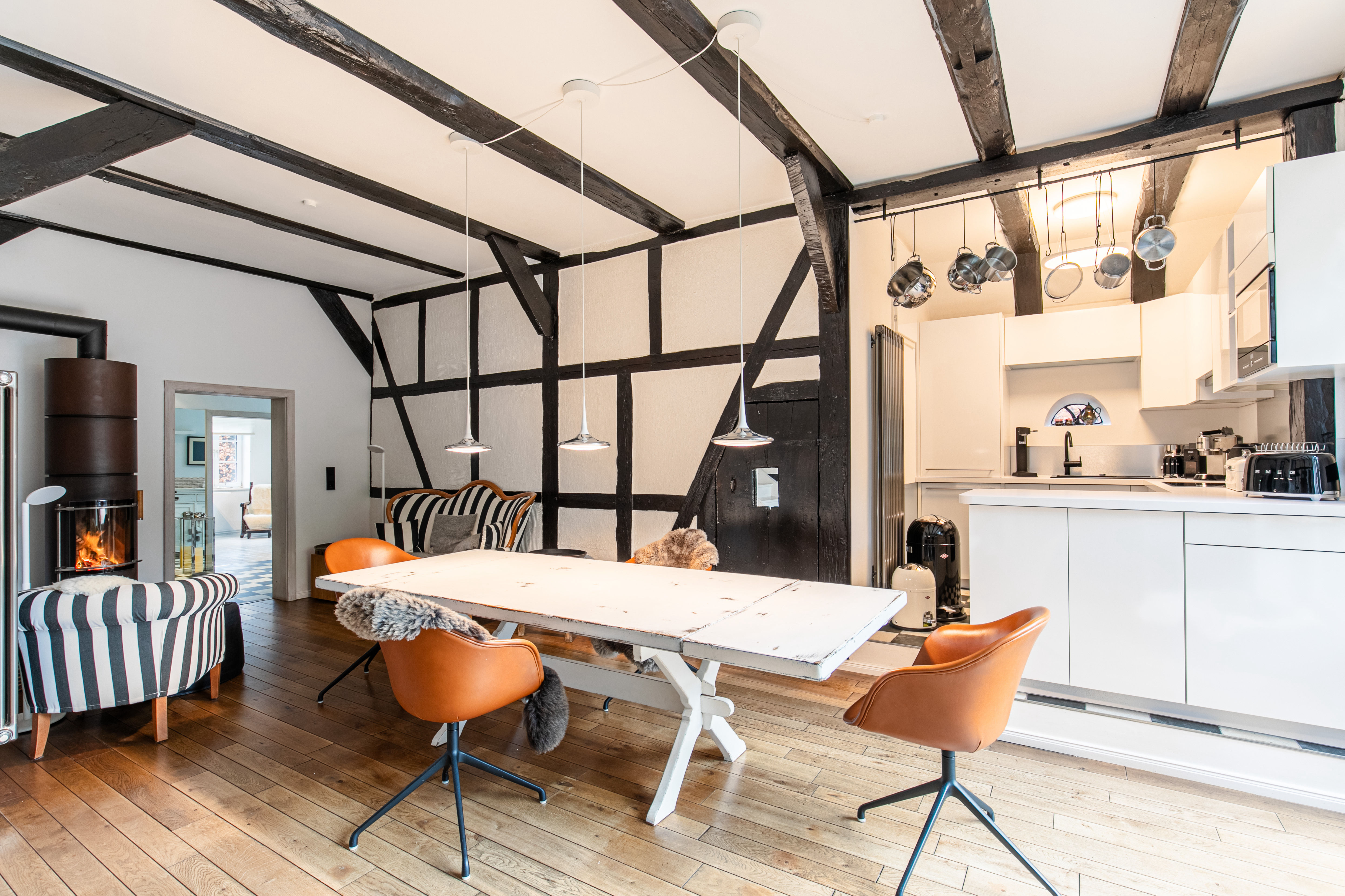 Hier noch ein paar kleine Hinweise in eigener Sache und um Missverständnissen vorzubeugen. Das Haus ist ein altes Haus. Es knirscht, es arbeitet, es lebt. Es hat seinen eigenen Charakter und ist quasi ein restaurierter „Oldtimer“. Deshalb wird im Mietvertrag auch ein üblicher Selbstbehalt für Kleinreparaturen vereinbart. Belohnt wird man mit einer unvergleichlichen Wohnwelt und einem großartigen Lebensgefühl.